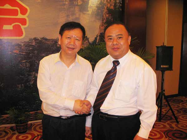 中共张家界市委书记胡佰俊欢迎李桂雄会长。