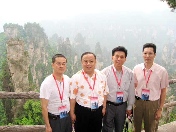 李桂雄会长(左二)、墨西哥西北地区中国和平统一促进会会长梁权暖(右二)、邝锦荣副会长(右一)、黄成(左一)在张家界天子山风景区留影。