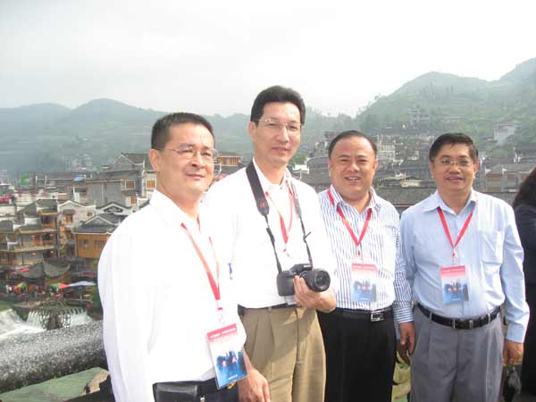 李桂雄会长、邝锦荣副会长、黄成总干事、马来西亚郑荣兴在湘西州凤凰古城留影。