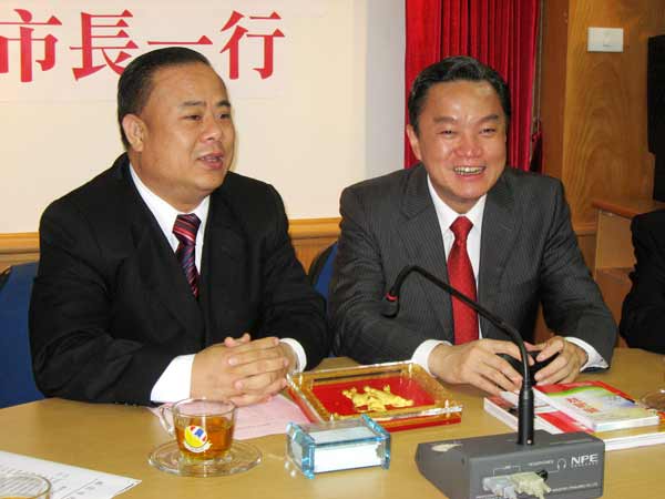 图上:李桂雄会长与陈奕威市长亲切交谈时影。