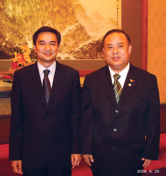 泰国国务院总理阿丕实·威差奇瓦阁下与李桂雄会长在钓鱼台合影