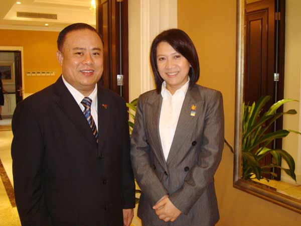 泰国商业部部长蓬提瓦·娜卡赛与李桂雄会长合影于泰王国驻中国大使馆