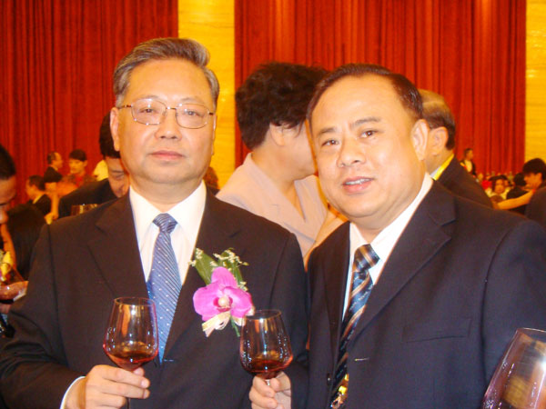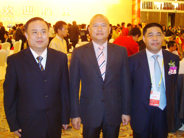 中华全国青年联合会副主席陈明金(中)、泰国华人青年商会会长李桂雄(左)、泰国福建商会会长陈德启(右)在"第十三届中国国际投资贸易洽谈会"欢迎酒会上合影(2009.9.7. 厦门市会展中心)