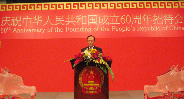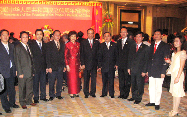 2009年9月27日,中国驻泰王国特命全权大使管木阁下暨夫人吴慧卿假曼谷素坤逸路22巷皇后花园大酒店三楼保伦厅举办招待会,庆祝中华人民共和国成立六十週年。应邀出席致贺的有泰国政要军警官员、各国驻泰国友好使节、泰华各社团首长、中资机构驻泰代表等欢聚一堂,共庆新中国成立六十週年华诞。本会会长率领常執委数十人出席了招待会。