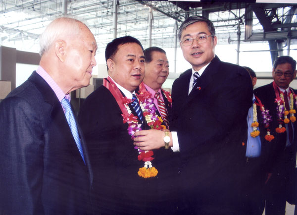 2009年9月28日,中国大使馆高振廷参赞、左志强参赞为应邀出席国庆活动的泰国侨团首长挂花送行
