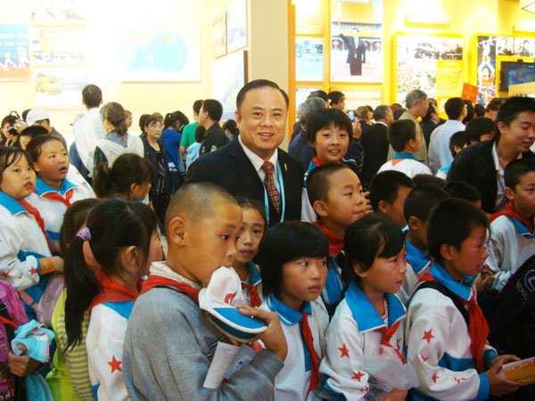 2009年9月29日,李桂雄会长与学生们于首都博物馆参观祖国科技成就展览