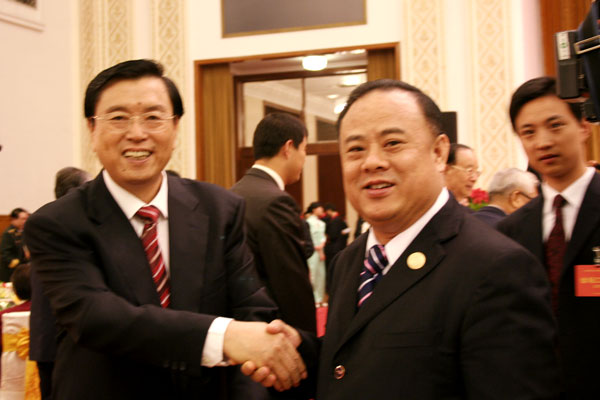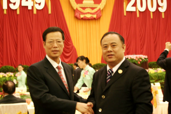 2009年9月30日晚,中共中央政治局委员张高丽在人民大会堂与李桂雄会长亲切握手