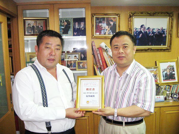 2009年10月16日,为更好发展本会会务,增强阵容,特聘请肇庆青年企业家、肇庆市茂盛房地产开发有限公司董事长郑则强先生为本会海外顾问,由李桂雄会长颁发聘任书予郑董事长。