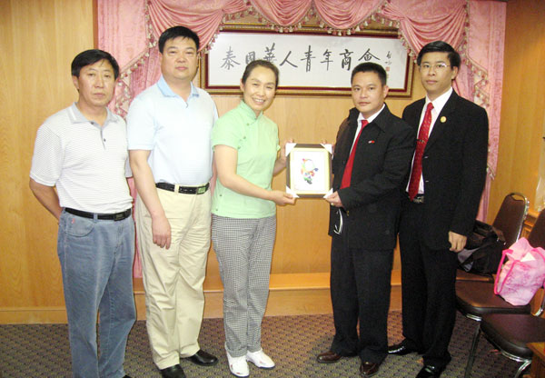 2009年11月8日上午,山西省大同市归国华侨联合会主席张兰萍女士,大同市人大委员会、民族宗教侨务外事工作委员会主任张燕威先生,大同市人民政府外事侨务办公室副主任赵加祥先生等抵本会访问,受到副会长姚小平、主任陈英群等热情接待,宾主就有关侨务工作与泰国华侨华人情况等方面做广泛交流。双方希望能够通过此次座谈,增进大同与青商会的友谊及促进两地文化交流和贸易往来。