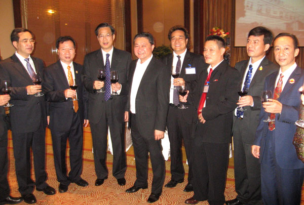 2009年11月9日下午五时,由本会协办的"广州—泰国投资贸易晚餐会"假曼谷是隆路假日大酒店寳伦厅举行。泰国商业部助理部长提拉塞、曼谷市副市长蓬贴˙郑差沛汶,侨团首长等出席了晚餐会。广州市人民政府副市长陈明德,曼谷市副市长蓬贴˙郑差沛汶,泰中商务委员会副主席邱威功等在晚餐会上讲话,晚餐会气氛融洽,大家互相交流,互通信息。为广州与泰国企业家们的进一步合作创造平台。本会出席的有副会长姚小平、林嘉南、邝锦荣、宁禾、李荣、蔡荣庄、李敏、谢崇通,会长助理胡坚毅、锺和武、许少玉,主任欧阳健生、林俊然、张楚南、尚延明、李先标、陈贤得、许梓明、林慰民、武风、王易,副秘书长杨艳峰、潘丞仲、马嫣,常委郑煜群、蔡孝兴、张楚宣、方阳升、吴育雄,执委岳群、黄奕明、詹碧芳等。