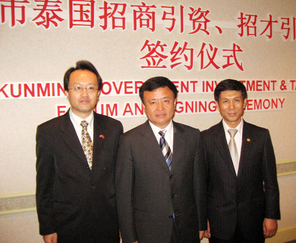 2009年9月24日,"昆明市泰国招商引资、招才引智座谈会"假香格里拉大酒店举行,出席者有泰国商业部、教育部、中国驻泰国大使馆官员、各社团领导,代表本会应邀出席的有副会长蔡荣庄、会长助理胡坚毅、总干事黄成。中共昆明市委常委、组织部长郭红波在座谈会上致词并介绍昆明市概况,欢迎泰国企业家投资昆明。泰国商业部、泰国商会、大使馆等官员代表在座谈会上纷纷发言表示:昆明与泰国商贸合作关系密切,特别在农产品、烟草、医药等项目的经贸往来更为突出。希望通过此次座谈会,更进一步促进双方的友好合作。