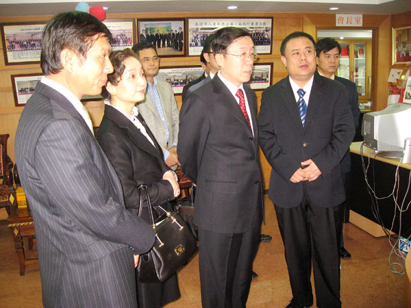 图:(一) 李桂雄会长与冯佐库副会长亲切交谈。图(二)冯佐库副会长参观青商会会址。(三) 李桂雄会长送纪念品予冯佐库副会长。