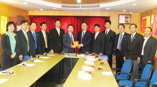 来自绿都南宁的中国—东盟博览会秘书处代表团,由农融副秘书长率领,于2010年2月4日近午时分莅访本会,由常务副会长林嘉南及邝锦荣,副会长林兆祥,会长助理叶沐强、锺和武、许少玉,主任欧阳健生、许俊龙,常委张泽成,总干事黄成等热烈欢迎这位曾多次莅访的老朋友农融副秘书长一行。