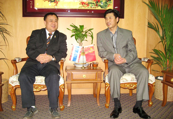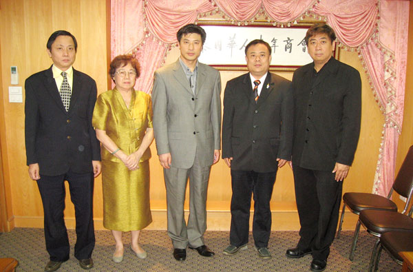 2010年2月19日,中国华侨大学华文学院书记、副院长赵明光等一行访问我会,会长李桂雄、主任许俊龙、执委黄奕明等给予热情的接待。宾主就有关泰中文化交流和教育事业进行了广泛的探讨。李桂雄说,华侨大学是泰国侨界家喻户晓的著名学府,几十年来培养出一代代的英才,特別是给予全球华侨华人子女学习中文汉语提供良好的环境,祖国改革开放以来,在中国政府、国务院侨办、对侨政策重视下,华侨大学华文学院在传播中华民族传统文化、中文教育事业更加发挥了重要作用,这次赵书记来访我会,我代表青商会同仁表示热烈欢迎,希望通过此次莅访,让泰华青年企业家们深刻了解华侨大学的各项教学方针,也让我们的子女都能有机会到华侨大学就读,学习中华文化和中国语言。赵明光书记感谢李会长的热情接待,他说,久闻泰国华人青年商会是泰国一个非常活跃的青年组织,不论在中泰友好、支持华文教育事业和两国经贸合作等领域,都做出了系列贡献,并且得到了两国政府、有关团体、各界人士的认可和称赞。今天很高兴来到青商会,正逢新春佳节,我代表丘进校长向大家问好,向李会长暨青商会全体委员致以新春的祝福,希望通过此次与李会长的会谈,能促进华侨大学与泰华青商的友好往来和互助合作,共同推动两地教育事业,真诚欢迎李会长及青商会同仁访问华侨大学,带你们的子女一同前往参观新老校园,更希望能将大家的子女送到创办已有六十年历史的华侨大学华文学院读书,我们将努力把他们培养成才,成为优秀的接班人,为国家为人民服务,为自己的事业创造辉煌。