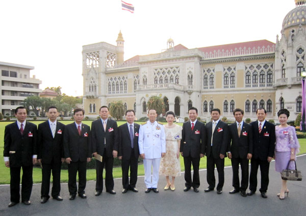 本会出席的有副会长林嘉南、吳楚潮、宁禾、苏木源、陈汉国、蔡荣庄,顾问赵春森,会长助理方舫、鍾和武,福利主任许俊龙,副秘书长王少青,总干事黃成等。图为泰国上议院主席巴速戌•汶德阁下暨夫人与青商会同仁合影于政府官邸。