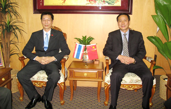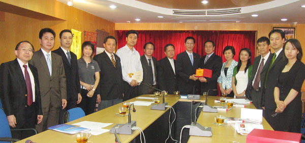 第八届东盟华商会及昆交会等展会,将于今年6月5日至7日,在春城昆明隆重举办,由云南省侨办副主任袁光兴任团长,重庆市外事侨务办公室副主任刘光术任副团长率领的 "第八届东盟华商会邀商小分队" 飞越万朵彩云南下到佛都曼谷邀商来了。泰国华人青年商会每年组团参加了前七届东盟华商会,早已成为华商会的常客。今番也成为该小分队专访的主要对象,于抵泰的翌日——2010年3月19日下午五时莅访本会。