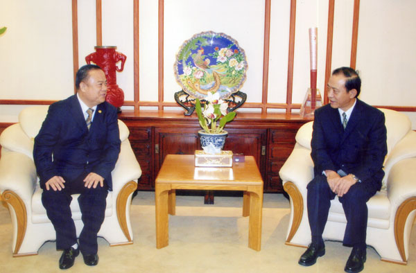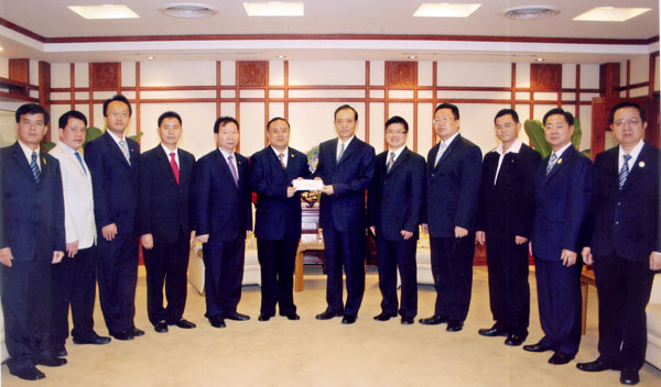 管木大使阁下,高振廷参赞兼总领事、林义舜一秘、胡广祥一秘等官员亲切接见李桂雄会长一行。并表示非常感谢青商会同仁对玉树灾区的关爱和支持。