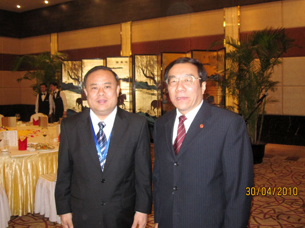 图一:中共上海市委常委、统战部部长杨晓渡于4月30日晚宴请出席世博会开幕式的海外特邀嘉宾,与李桂雄合影。