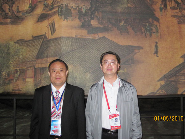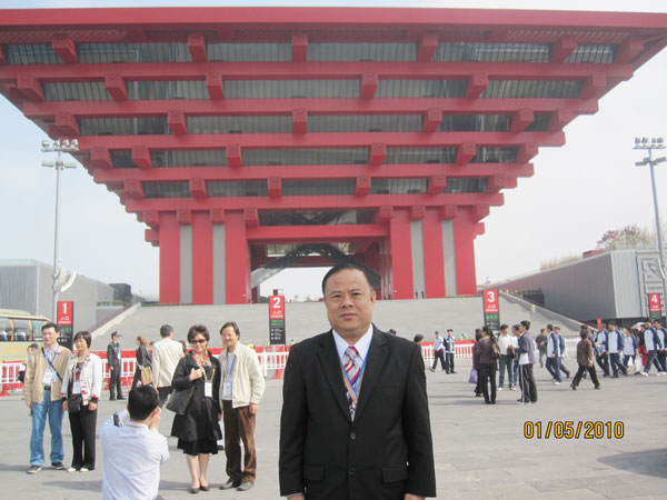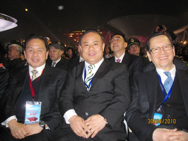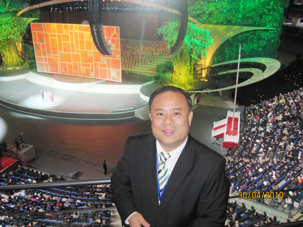 图三、图四:世博会于2010年4月30日晚20时10分隆重举行开幕式,李桂雄在开幕式上留影。