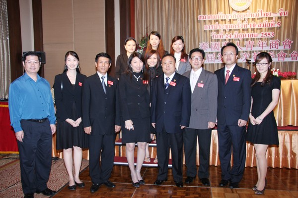李会长指出,本会庆祝十周年之际,现已接到泰国国务院总理阿披实•域差栖哇、国务院副总理素贴•帖素挽、曼谷市市长素坤攀•保里帕亲王等的贺函,并接到了中国全国政协港澳台侨委员会主任陈云林的亲笔贺词、中国人民对外友好协会会长陈昊苏的亲笔贺词、中华海外联谊会、中国国务院侨务办公室、中华全国归国华侨联合会、中华全国青年联合会等单位的贺函、贺词,这是我会的光荣,我会全体同仁感到无比的自豪。此次本会特得到中国国家邮政局的批准并为印制"庆祝泰国华人青年商会成立十周年"精装纪念邮票,分发给每位执委作为纪念,还特织造会徽领带、制造会徽胸章等纪念品,请大家向商会办公厅接领。