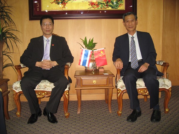 为让首访的蓝粤春副主任等长官对青商会有直观和较完整地认识青商会,除赠送每位一本会册和参观会址外,邝锦荣副会长详细介绍青商会成立十年来的发展历程,执委会员系以广东籍占大多数,全国各省区青年华侨新移民一千多人,执委四百余人组成的青商组织。他并介绍了泰粤,泰穗,泰深之间广泛的经贸合作交往,进而切入华教的话题,大谈泰国近年华教快速发展的大好势头,和泰中两国政府对华教事业大力支持的各项措施,希望贵宾们这次莅泰,深入了解泰国整体中文教育水平,作为广肇籍的一员,他也请蓝副主任一行有机会也莅临广肇学校调研,给予指导,最好是各籍属的华校走透透,当会很有收获。