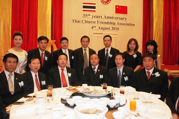 2010年8月4日晚,泰国泰中友好协会假曼谷瑞士大酒店举行庆祝泰中建交35周年招待会,恭请诗琳通公主殿下为主席主持当晚庆祝招待会,诗琳通公主殿下在招待会上介绍自己30多次访问中国美丽河山,受到中国政府领导人的亲切会见,对泰中两国的友好往来,文化交流做出贡献。泰中友好协会主席功•塔拍兰氏、中国人民对外友好协会副会长冯佐库等在宴会上致词。恭祝泰中友谊万古长青,本会参加的有会长李桂雄,副会长张扬、林嘉南、邝锦荣、宁禾、李荣、蔡荣庄,会长助理叶沐强、锺和武,主任许俊龙、王少青,常委权慧,执委黄奕明、黄雪明、孙丽玲等。