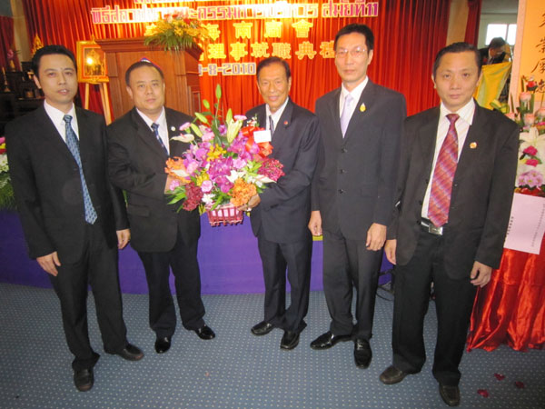 8月8日泰国海南商会第11届就职典礼假海南会馆举行,本会会长李桂雄、副会长邝锦荣、主任许俊龙、副秘书长王少青等携鲜花前往祝贺。祝其会务蓬勃发展,蒸蒸日上。