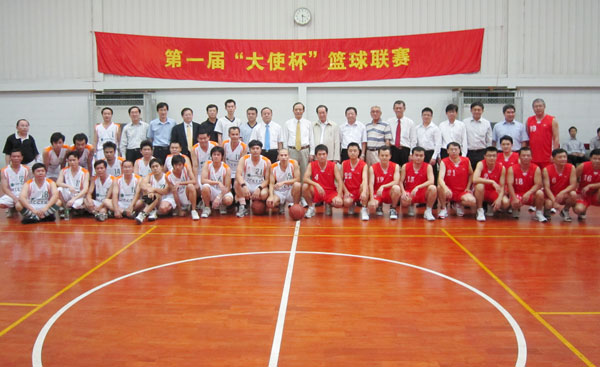 由中国驻泰王国大使馆首倡,获各单位热烈向应参与协办的第一届"大使杯"篮球联赛,于8月27日下午三点,在中国驻泰王国大使馆篮球馆揭开战幕,展开为期逾一个半月的赛程,中国驻泰王国特命全权大使管木阁下亲为"开场战"开球,首战双方为使馆队对中文电视台队,"战况"播放当晚中文台荧幕,各有亮丽表现,轰动侨社。