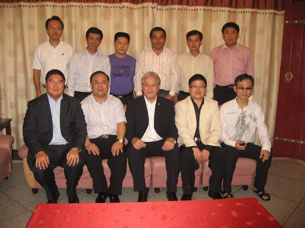 图:泰国国家贸易委员会主席吉•实铁(前排中)与青商会领导合影。