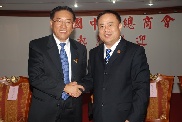 9月19日中国全国侨联主席林军阁下率中国侨联副秘书长林佑辉、广东侨联主席王荣宝、上海侨联副主席李 葳萍,中国侨联办公厅处长孔涛等访问泰国,中总、潮馆暨泰华各界联合举行公宴大会,图为本会会长李桂雄与林军主席在公宴大会上合影。