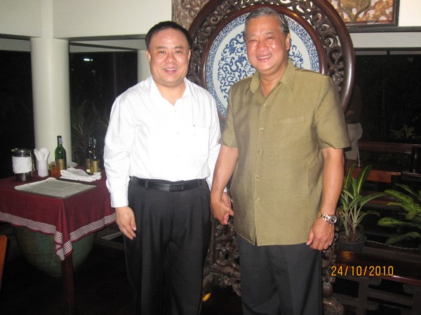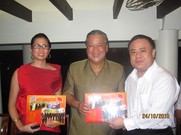 10月24日晚,曼谷市市长素坤攀•波里帕亲王,设宴萱派格皇宫,宴请参加泰中建交35周年活动有关友好人士和官员。本会会长李桂雄向曼谷市长素坤攀•波里帕亲王、副市长塔耶•贴素汪女士赠送泰国华人青年商会成立十周年纪念邮票。