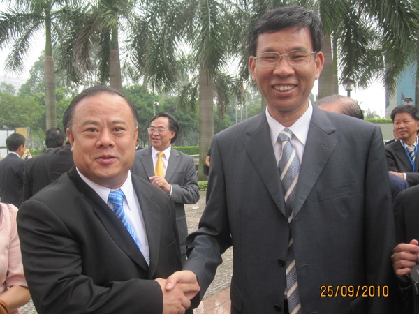 本会会长李桂雄荣任广东省海外交流协会常务理事,并出席9月25日在广州召开的第二次海外理事会议暨第五届理事授聘仪式,得到广东省刘昆副省长、海交会汤炳权会长、吕伟雄、吴锐成副会长等接见并颁发证书。图为刘昆副省长(右)与李桂雄会长(左)亲切握手。