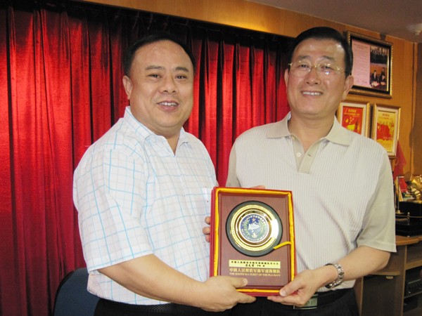 图三:苏支前司令员赠纪念品予李桂雄会长。