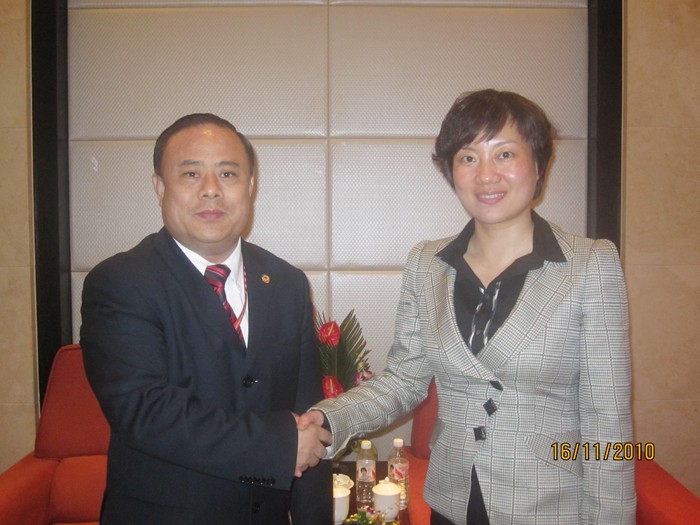 图:(一)杭州市副市长佟桂莉会见李桂雄会长时影。