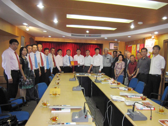 有朋自远方来,不亦乐乎。以丘进校长为首的中国华侨大学代表团一行五位,在华侨大学泰国校友会、泰中文化经济协会诸领导等陪同下,一行共十七人,于十一月二十一日上午,莅临泰国华人青年商会访问,受到会长李桂雄等的热诚欢迎,场面热烈,亲切和谐。