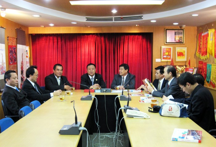 2010年12月21日下午,中华全国台湾同胞联谊会副会长史茂林率领的代表团,在泰国华侨协会副主席张文焕先生陪同下,抵本会访问。本会会长李桂雄、副会长张创标、会长助理胡坚毅、秘书长时磊、主任许俊龙、常委张杰等在会议室热情接待史茂林副会长一行。李桂雄会长与史茂林副会长是老朋友,关系密切,中华全国台联与青商会交流频繁。会见时,李会长简单介绍了在泰台商同胞、大陆同胞和新老侨胞的经贸合作情况及参加青年商会的台胞发展情况。史副会长一行也需要更多的了解在泰台湾同胞的理念,意在推动台胞与新老侨胞更多认识祖国的大好形势。史副会长表扬李会长及商会同仁在促进两岸和谐和祖国和平统一事业做出了贡献。胡坚毅会长助理、时磊秘书长给台联代表团提供了不少信息,并与其充分的交换意见。访问团嘉宾还有:全国台联办公室主任蔡龙,全国台联文宣部宣传处处长阎昆,全国台联联络部副部长江浩,联络部交往处官员薜原等。