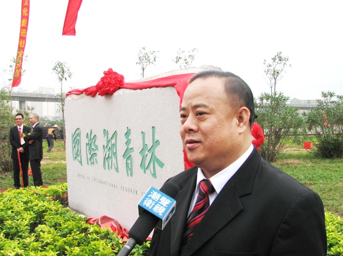 2010年12月14日第六届国际潮青联谊会14日在汕头开幕。在汕头海湾公园举行的"国际潮青林"栽种仪式上,李桂雄会长代表为「国际潮青林」揭幕及致词。