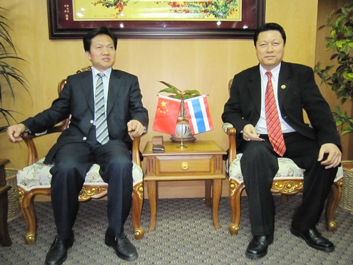 林偉副會長在致歡迎詞中談到:本會會長李桂雄因出國在外,對諸位領導的來訪很重視,委託本人代表青商會和他表熱誠的歡迎和接待。青商會成立已逾十春秋,大部分成員是新移民、新華僑。會員有一千多人,常執委四百多位,相當部分成員已事業有成,榮獲泰中兩國政府的大力支持、愛護。為兩國的友好、經貿、文化往來起到重要的橋樑作用。泰國是個旅遊發達的國家,有微笑國度美譽,歡迎多往來,進一步加強合作。李桂雄會長回來,我們會向他匯報,相信他會率團到無錫惠山作客。