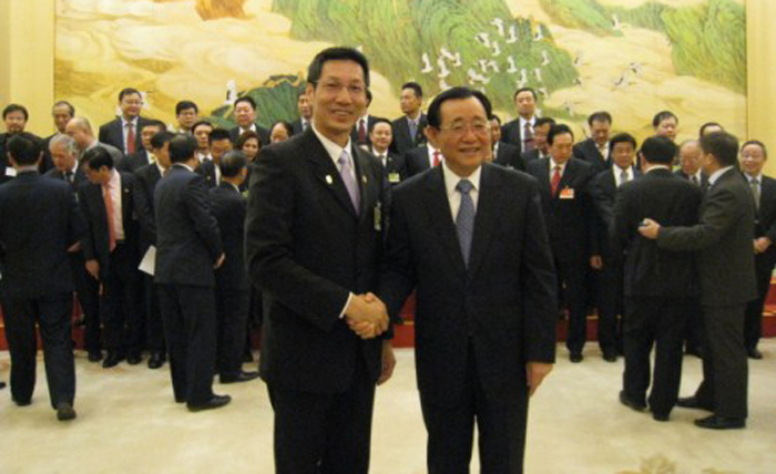 泰国华人青年商会常务副会长、泰国广肇商会会长、泰国中华总商会会董邝锦荣于2011年3月3日至13日列席了在北京召开的"中国人民政治协商会议第十一届全国委员会第四次会议"。大会期间,听取了贾庆林主席的政协全国委员会常务委员会工作报告;听取了王志珍副主席关于政协十一届三次会议以来提案工作情况的报告,并参加了三场政协委员的大会发言和多次小组讨论,中共中央政治局委员、全国政协副主席王刚,全国政协副主席、致公党中央主席万钢,全国政协港澳台侨委员会主任陈云林,与及中共统战部,国务院侨办,中国侨联,致公党中央委员会,北京市侨办,北京市侨联等主要领导分别会见和宴请了来自21个国家38位列席代表。 在小组讨论会上,邝会长的"关于利用中国国力资源涵养海外中青年侨领的建议"被大会秘书处做为"会议简报",真正起到了参政议政的作用。