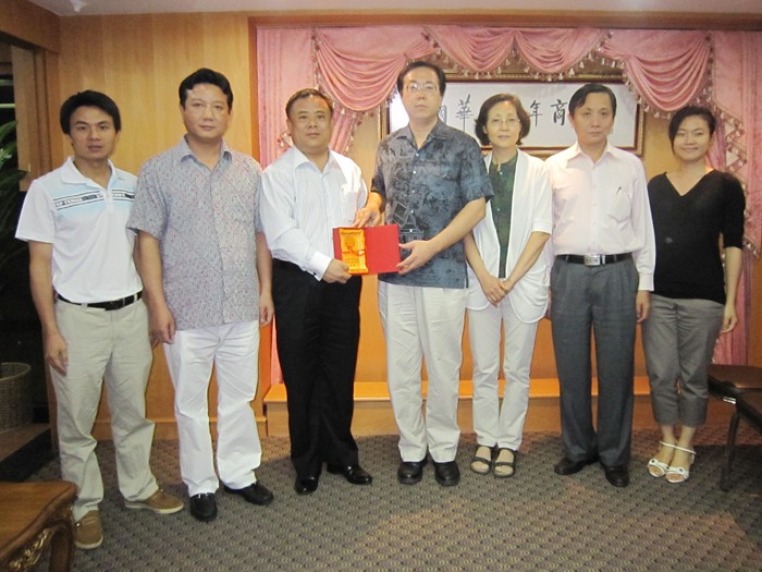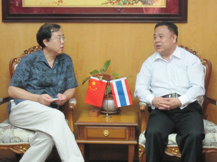 2011年4月1日下午,人民日报亚太中心分社社长丁刚、记者吴成良暨佩娟等抵泰国华人青商会访问,受到会长李桂雄、顾问赵春森、福利主任许俊龙等亲切接待。丁刚社长与李桂雄会长就有关媒体新闻作广泛交流。丁社长说:人民日报为扩大海外的新闻服务,在亚太地区设立了中心分社,而且设于华人华侨最多的泰国。青商会同仁与祖国关系密切,对泰国及东南亚地区深刻了解。希望能从多方面得到支持和协助。最近人民日报不但报导政治、经济消息,我们还准备在泰国采访报导有关与中国大米贸易、橡胶贸易的主要商贾、泰国采收燕窝方法及市场去向、主要旅游区域等。华侨华人的活动讯息也请多提供。