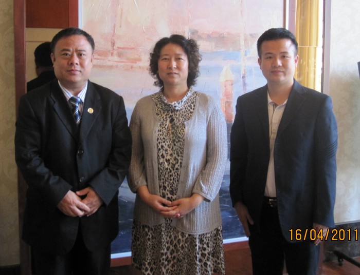 图六:海南省海口市琼山区区委韩云秋书记(中)与泰国华人青年商会李桂雄会长(左)、泰国华人青年商会马文钦顾问合影。