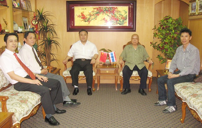 陈松喜董事长在畅谈中表示:泰华青年商会朝气蓬勃、富活力、年轻有为,在李桂雄会长的悉心领导下,精诚合作奋发向前,会务发展可圈可点。李会长与青商会同仁每年都到泰华孤儿院为孤儿捐钱捐物,关心孤儿的成长,为社会慈善福利事业做出有目共睹的成绩,我非常感动。泰华青年商会成立虽只有十一年,但发展迅速,茁壮成长,泰华社会对青年商会寄以厚望,是泰华社会、侨社团可喜的接班人,望你们戒骄戒躁,继续努力,为社会和谐发展尽自己的力量。祝青商会越办越好!大家促膝欢谈、亲情洋溢。青年商会参加欢迎接待的还有:会长助理王少青、福利主任许俊龙、副秘书长陈少东等。