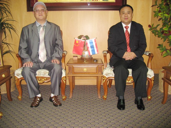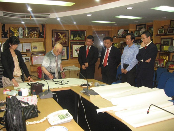 中国书画家协会理事、著名书法家郝东华,在中国国际经济合作学会魏东财、颉美荣的陪同下,于五月十六日莅临曼谷泰国华人青年商会访问,受到会长李桂雄;副会长:张创标、黄懿光、钟和武,会长助理:叶沐强、连剑丰、王少青、尚延明,福利主任许俊龙,常务执委陈玉宝、陈楚生,总干事黄成等的热诚欢迎和接待。宾主促膝欢谈、亲切和谐。
