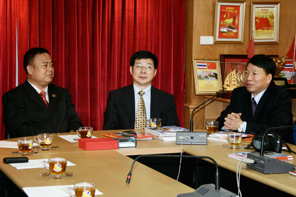 莅泰宣传介绍中国经济形势与法制环境及侨商在华投资相关政策的中国国务院侨办经济科技司司长庄荣文阁下,率"中国经济与法制专家巡讲团"一行,成员包括:彭雪峰博士(北京大成律师事务所主任),刘立峰博士(国家发改委宏观经济研究院投资战略研究室主任),王昱先生(北京和君咨询有限公司合伙人),张瀛旭先生(国侨办经科司经济处副处长),在中国驻泰大使馆侨务参赞方文国、一等秘书李青山陪同下,于2011年5月17日(星期二)下午,莅临泰国华人青年商会访问,受到本会会长李桂雄暨顾问郑伟光,副会长林深、邝锦荣、林兆祥、谢崇通、张创标、黄懿光,会长助理王少青,福利主任许俊龙,常委陈玉宝,总干事黄成等热情欢迎。宾主亲切座谈交流,气氛融洽欢愉。