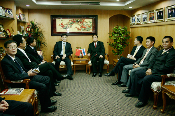 宾主进行近一个小时座谈交流,坦率交换意见看法,气氛融洽。最后,互赠纪念品并合影。是晚,东道主假座景色怡人的湄南河畔红头船俱乐部宴请访问团一行,宾主共同欢度一个轻松愉快的泰国佛诞节之夜。