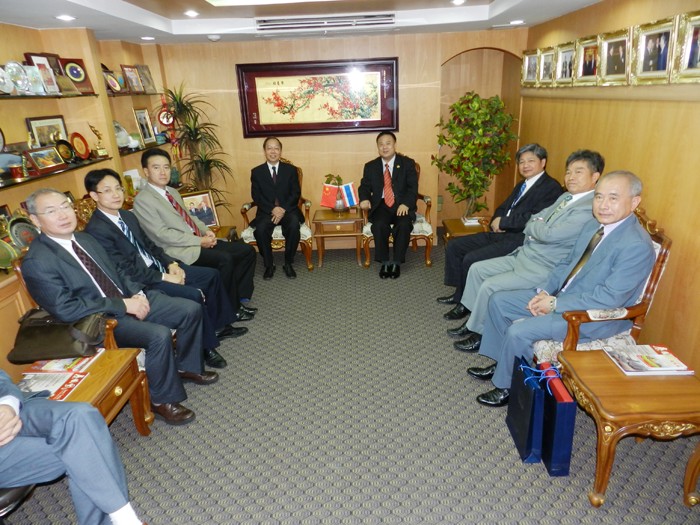 李桂雄会长在座谈会上致热情洋溢欢迎词,他十分激动的表示:今天是他人生中一个值得纪念珍重的特别日子,因为这是他四年多年热切期盼的一项重要事务活动终于实现运行。为此,特代表本会全体常执委热烈欢迎该团一行莅临参访指导。大家都是首次莅会的好领导、好朋友;简介该会成员都是中国改革开放以来走出国门,到泰国谋生创业的各省市新华侨、新移民代表,创会至今11年,会务迅速发展,受到泰中政府的关怀指导,各级领导,包括:中国大使馆、各省市外事办、侨办、侨联、统战部、政协、人大及青年联合会青年企业家协会等机构的重视支持,在开展泰中文化、经贸、科技、教育、艺术等领域合作交流中起到桥梁纽带的作用,因为本会成员大部分与中国各地都有生意往来。该会通过此次莅泰访问考察调研,可以深入体验感受到海外华人华裔最多的泰国社会的氛围状况,俾作今后参政议政的依据参考。据中国经济专家的调研总结:目前,中国经济实力约占世界经济结构的30波生左右,而700年前占70波生;中国的"十二五"计划目标,正是朝着经济建设这个目标全力发展的。所以说,该团在这个时期莅泰访问,具有十分深远的作用和意义。顺祝该团访泰旅途平安愉快,完成任务,载誉荣归。