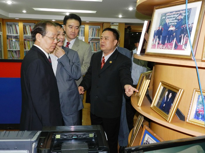 (三)访问团团长黄子强在李桂雄会长陪同下参观青商会。