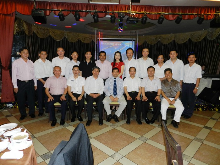 (六)青商会领导、访问团成员与前副总理功•塔拍兰氏于红头船大酒楼合影。