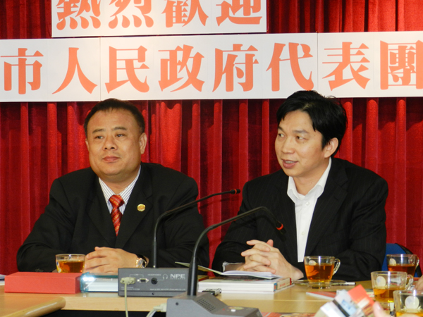 图三:李桂雄会长(右二)、何美华市长(左二)、王少青会长助理(右一)、陈玉宝常委(左一)合影。