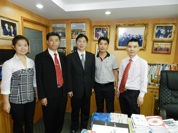 中国义乌市人民政府考察团一行七人,在市长何美华的带领下,于六月七日中午莅临泰国华人青年商会访问,受到会长李桂雄、顾问李闻海(正大集团副总裁)等的热诚欢迎和接待。宾主促膝谈心,达成共识,促进合作。